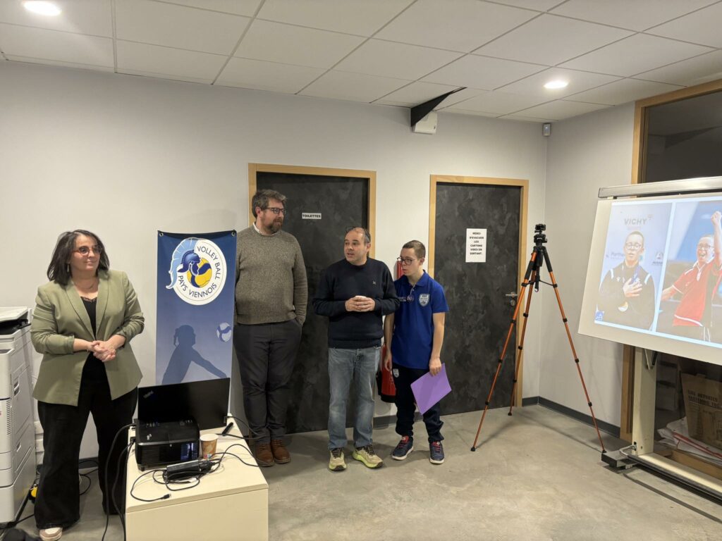 Intervention inspirante de Fabien Laniel, entraîneur du Rhodia Club Tennis de table, accompagné d’Aymeric Gouyaud, sportif de haut niveau en tennis de table sport adapté et multiple médaillé.