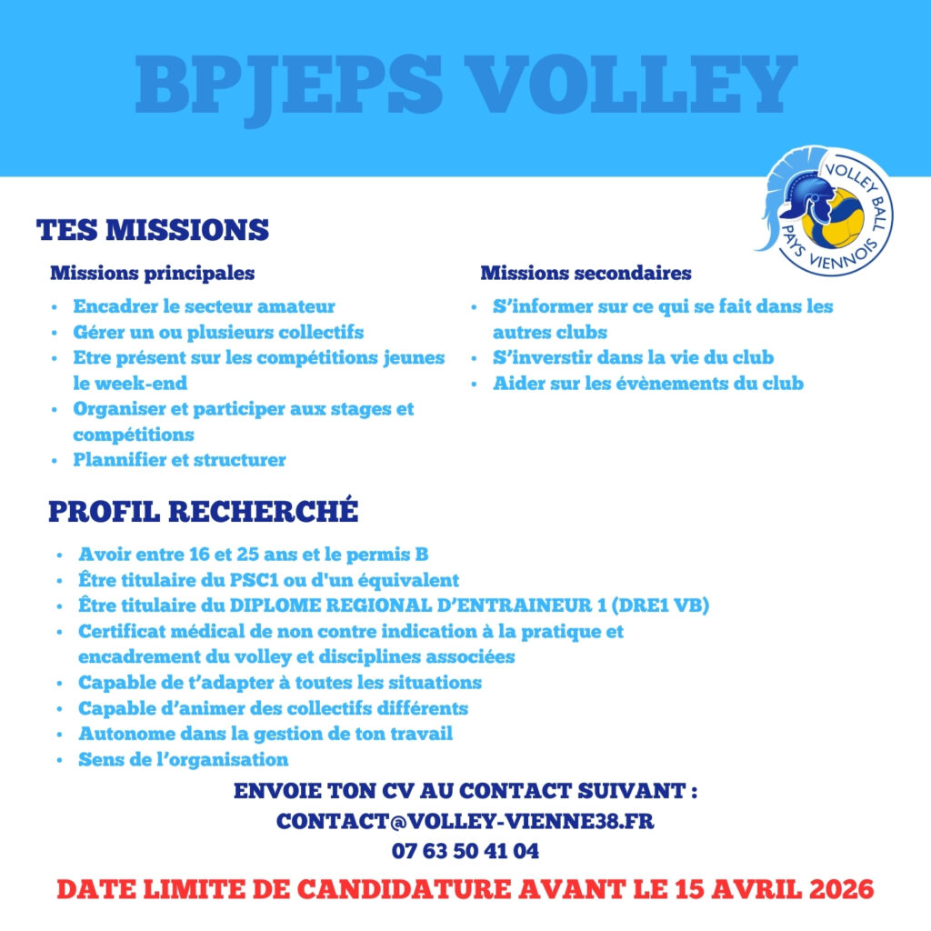 Nous recrutons un(e) BPJEPS pour la saison 2026/2027 pour renforcer le club.